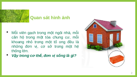 Vậy trong cơ thể, đơn vị sống là gì? 2 NỘI DUNG BÀI HỌC 1. Khái quát
