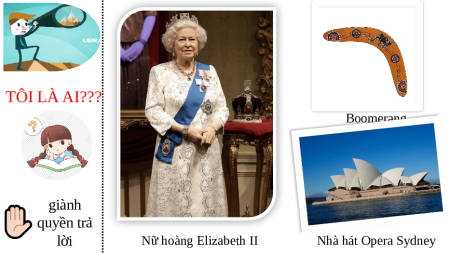 TÔI LÀ AI??? Thú mỏ vịt Thú mỏ vịt giành quyền trả lời Chim Kiwi Chuột túi Kangaroo TÔI LÀ AI??? Boomerang giành quyền trả lời Nữ hoàng Elizabeth II Nhà hát Opera Sydney