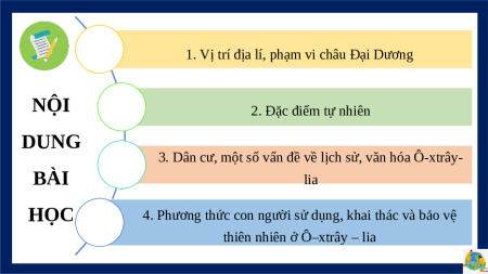 1. Vị trí địa lí, phạm vi châu Đại Dương NỘI 2. Đặc điểm tự nhiên DUNG