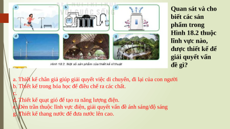 Hình 18.1. Tháp treo Quan sát và cho biết các sản phẩm trong Hình 18.2 thuộc lĩnh vực nào, được thiết kế để giải quyết vấn đề gì?