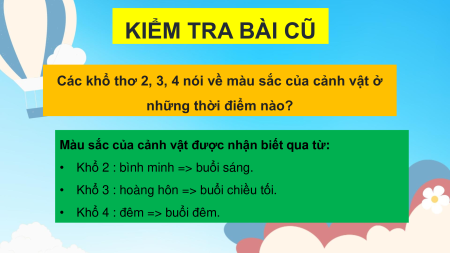 Các khổ thơ 2, 3, 4 nói về màu sắc của cảnh vật ở