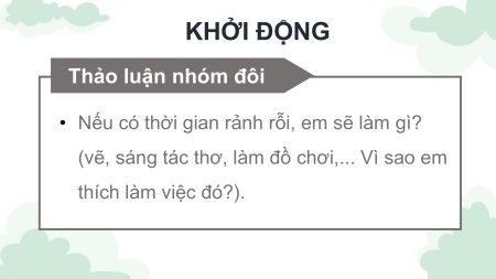 • Nếu có thời gian rảnh rỗi, em sẽ làm gì?
