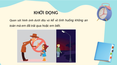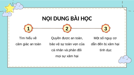 toàn mà em đã trải qua hoặc em biết. BÀI 18: PHÒNG TRÁNH BỊ XÂM HẠI NỘI DUNG BÀI HỌC 1 2 3 Tìm hiểu về Quyền được an toàn, Một số nguy cơ cảm giác an toàn