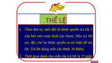 1. Theo thứ tự, mỗi đội sẽ được quyền trả lời 5