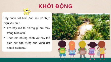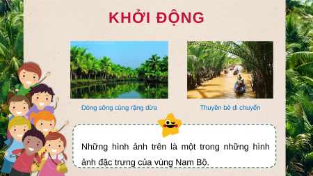 hiện nét đặc trưng của vùng đất nào ở nước ta? KHỞI ĐỘNG Dòng sông cùng rặng dừa Thuyền bè di chuyển