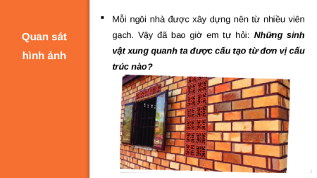 vật xung quanh ta được cấu tạo từ đơn vị cấu trúc nào? 2 NỘI DUNG BÀI HỌC I. Tế bào là gì?