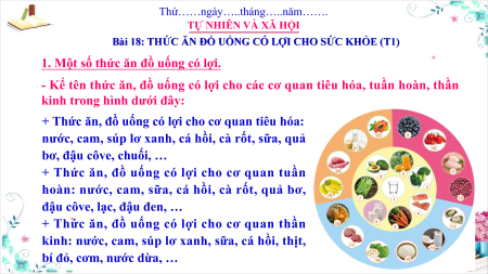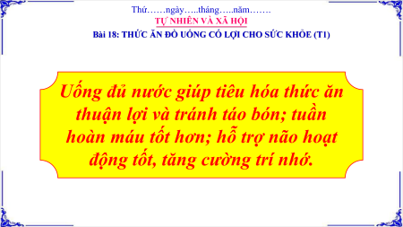 Giáo án Powerpoint Bài 18: Thức ăn, đồ uống có lợi cho sức khỏe Tự nhiên xã hội lớp 3 Cánh diều