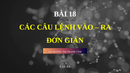 CÁC CÂU LỆNH VÀO – RA ĐƠN GIẢN GV. HOÀNG THỊ THANH TÂM 9 . 2 4 . X X
