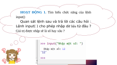 HOẠT ĐỘNG 1. Tìm hiểu chức năng của lệnh input()