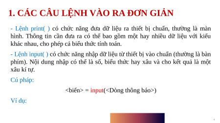 1. CÁC CÂU LỆNH VÀO RA ĐƠN GIẢN