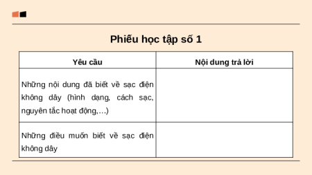 Phiếu học tập số 1 Yêu cầu Nội dung trả lời