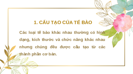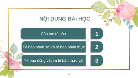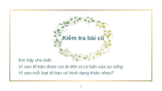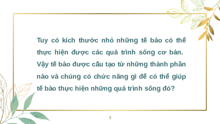 tế bào thực hiện những quá trình sống đó? 3 NỘI DUNG BÀI HỌC Cấu tạo tế bào 1