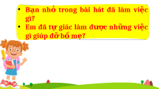 ỏ trong bài hát đã làm vi c ệ gì? • Em đã t ự giác làm đư c ợ nh n ữ g vi c ệ gì giúp đ b ỡ m ố ? ẹ
