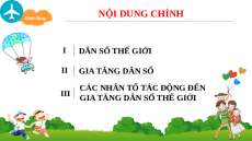 sao? Những nhân tố nào góp phần gia tăng dân số? NỘI DUNG CHÍNH Khởi động I DÂN SỐ THẾ GIỚI II GIA TĂNG DÂN SỐ