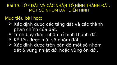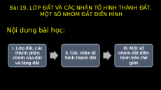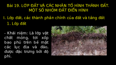 Bài 19. LỚP ĐẤT VÀ CÁC NHÂN TỐ HÌNH THÀNH ĐẤT.