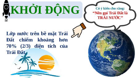 Lớp nước trên bề mặt Trái Đất chiếm khoảng hơn 70% (2/3) diện tích của Trái Đất. Chương 5: