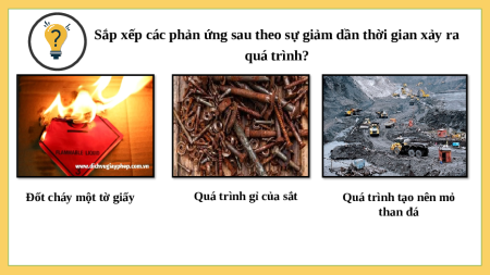 Sắp xếp các phản ứng sau theo sự giảm dần thời gian xảy ra quá trình?