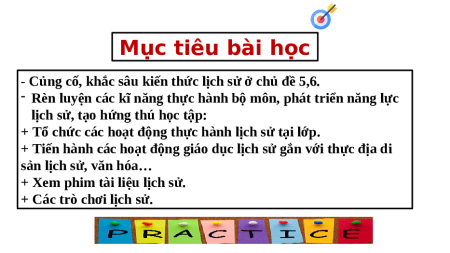 - Củng cố, khắc sâu kiến thức lịch sử ở chủ đề 5,6.