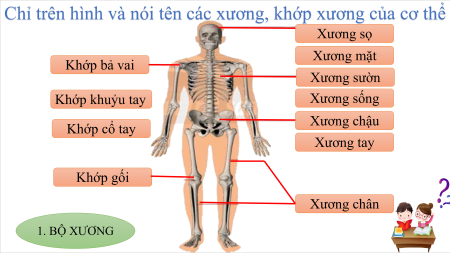 Xương sọ Xương mặt Khớp bả vai Xương sườn Khớp khuỷu tay Xương sống Xương chậu Khớp cổ tay Xương tay Khớp gối Xương chân 1. BỘ XƯƠNG