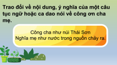tục ngữ hoặc ca dao nói về công ơn cha mẹ. Công cha như núi Thái Sơn