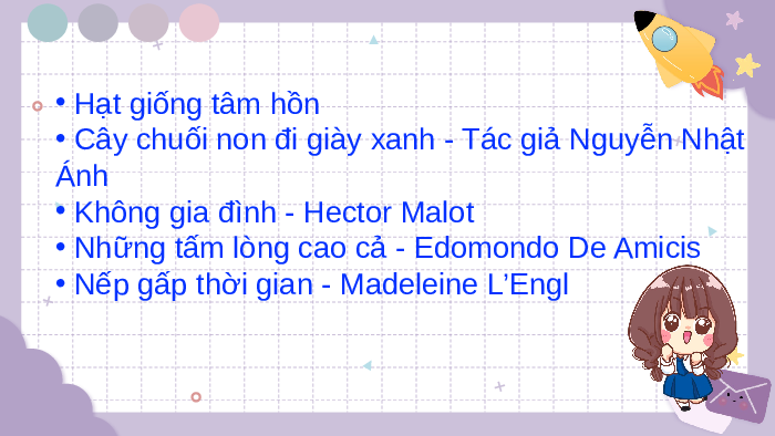 ++ + Cuốn sách em yêu KHỞI ĐỘNG Kể tên m t v ộ ài cu n sách ố em thích. • Hạt giống tâm hồn