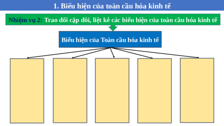 Nhiệm vụ 2: Trao đổi cặp đôi, liệt kê các biểu hiện của toàn cầu hóa kinh tế