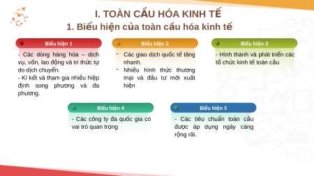 1. Bi u hi n c a toàn c u hóa kinh tể ệ ủ ầ ế