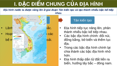 Đ a hình n c ta đ c nâng lên giai đo n Tân ki n t o và t o thành nhi u b c k ti p ị ướ ượ ở ạ ế ạ ạ ề ậ ế ế