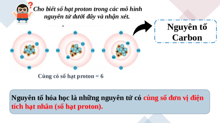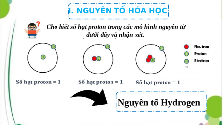 dưới đây và nhận xét. Số hạt proton = 1 Số hạt proton = 1 Số hạt proton = 1 Nguyên tố Hydrogen