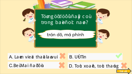 A. Laøm vieäc thaät laø vui B. UÙt Tin C.Beù Mai ñaõ lôùn D. Toùc xoaên, toùc thaúng Trở về