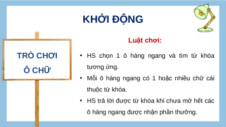 • HS chọn 1 ô hàng ngang và tìm từ khóa Ô CHỮ tương ứng.