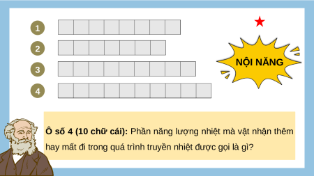 ô hàng ngang được nhận phần thưởng. 1 D O N G N A N G 2 T H E N A N G NỘI NĂNG 3 N H I E T N A N G 4 N H I E T L U O N G