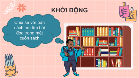 BUỔI HỌC NGÀY HÔM NAY KHỞI ĐỘNG Chia sẻ với bạn cách em tìm bài đọc trong một cuốn sách