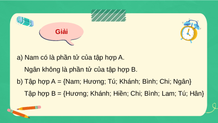 a) Nam có là một phần tử của tập hợp A không? Ngân có là