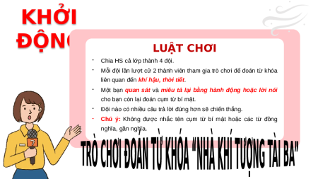 ĐẾN VỚI BUỔI HỌC HÔM NAY! KHỞI ĐỘNG LUẬT CHƠI