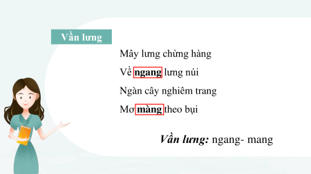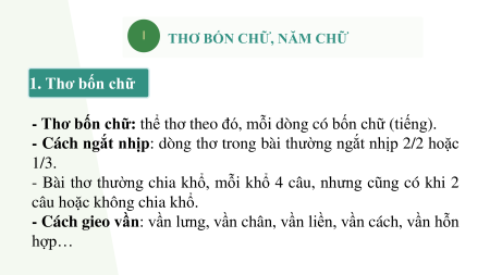 - Cách gieo vần: vần lưng, vần chân, vần liền, vần cách, vần hỗn