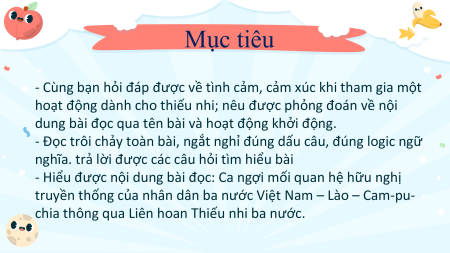 - Hiểu được nội dung bài đọc: Ca ngợi mối quan hệ hữu nghị