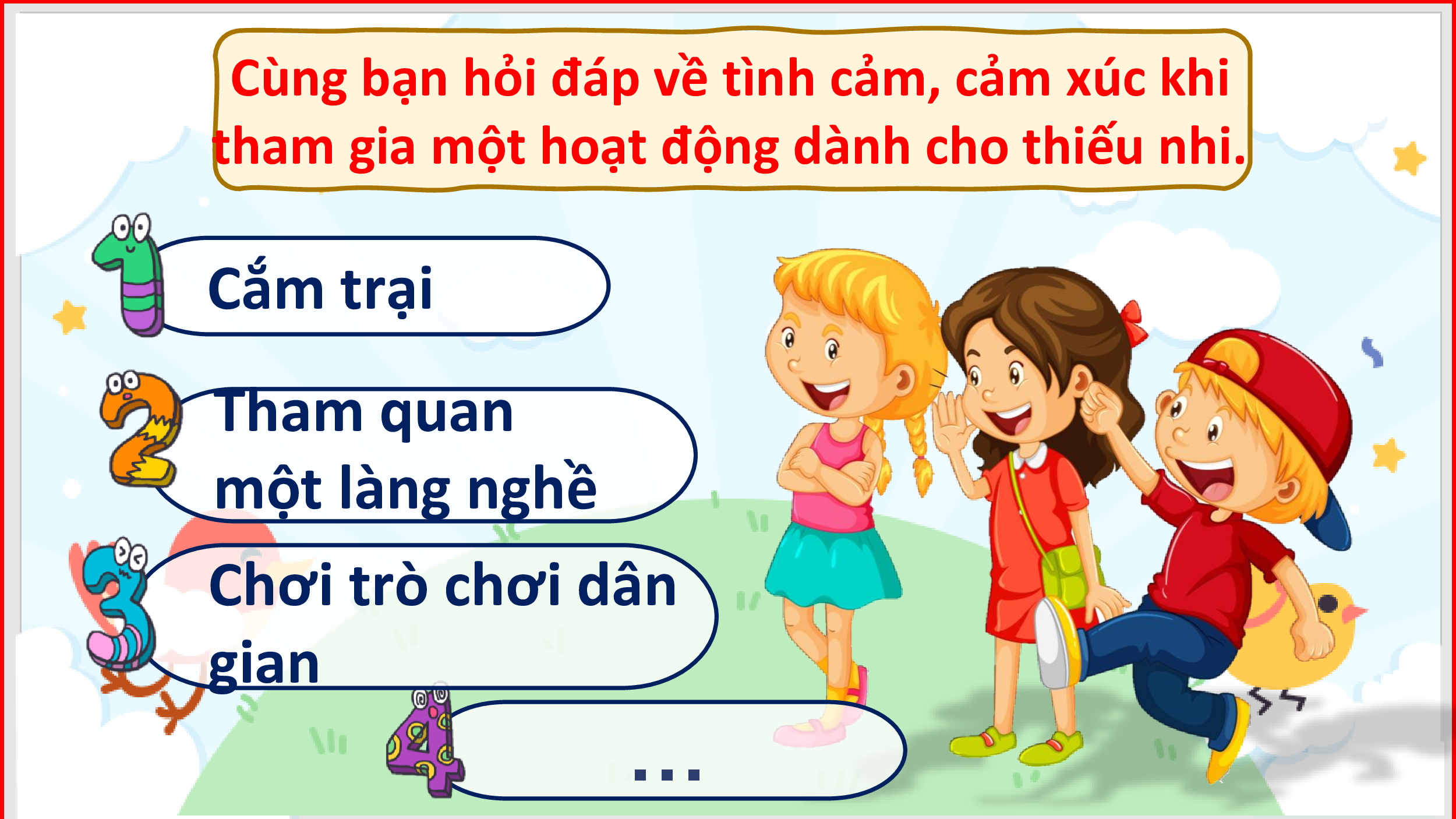 hoạt động dành cho thiếu nhi; nêu được phỏng đoán về nội