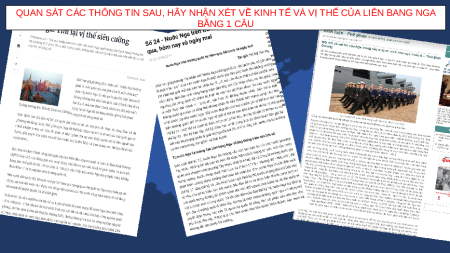 QUAN SÁT CÁC THÔNG TIN SAU, HÃY NHẬN XÉT VỀ KINH TẾ VÀ VỊ THẾ CỦA LIÊN BANG NGA BẰNG 1 CÂU