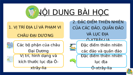 BÀI 20: VỊ TRÍ ĐỊA LÍ, PHẠM VI VÀ ĐẶC ĐIỂM THIÊN NHIÊN CHÂU ĐẠI DƯƠNG