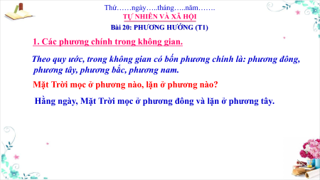 Giáo án Powerpoint Bài 20: Phương hướng Tự nhiên xã hội lớp 3 Cánh diều
