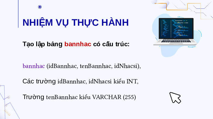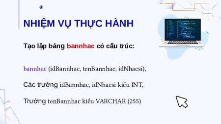 Tạo lập bảng bannhac có cấu trúc: