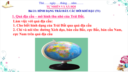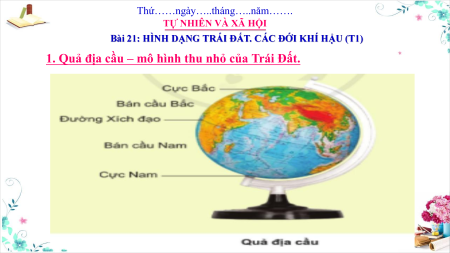 Giáo án Powerpoint Bài 21: Hình dạng trái đất Các đới khí hậu Tự nhiên xã hội lớp 3 Cánh diều