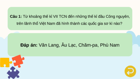 Đáp án: Văn Lang, Âu Lạc, Chăm-pa, Phù Nam
