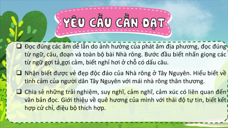 từ ngữ, câu, đoạn và toàn bộ bài Nhà rông. Bước đầu biết nhấn giọng các