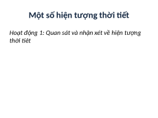 TỰ NHIÊN XÃ HỘI 1 Bài 21: THỜI TIẾT Khởi động