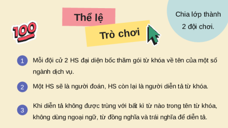 Mỗi đội cử 2 HS đại diện bốc thăm gói từ khóa về tên của một số ngành dịch vụ. 2