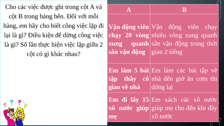 hàng, em hãy cho biết công việc lặp đi Vận động viên Vận động viên chạy