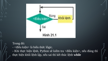 thực hiện khối lệnh lặp, nếu sai thì kết thúc lệnh while
