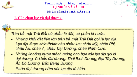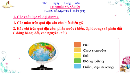 Giáo án Powerpoint Bài 22: Bề mặt trái đất Tự nhiên xã hội lớp 3 Cánh diều